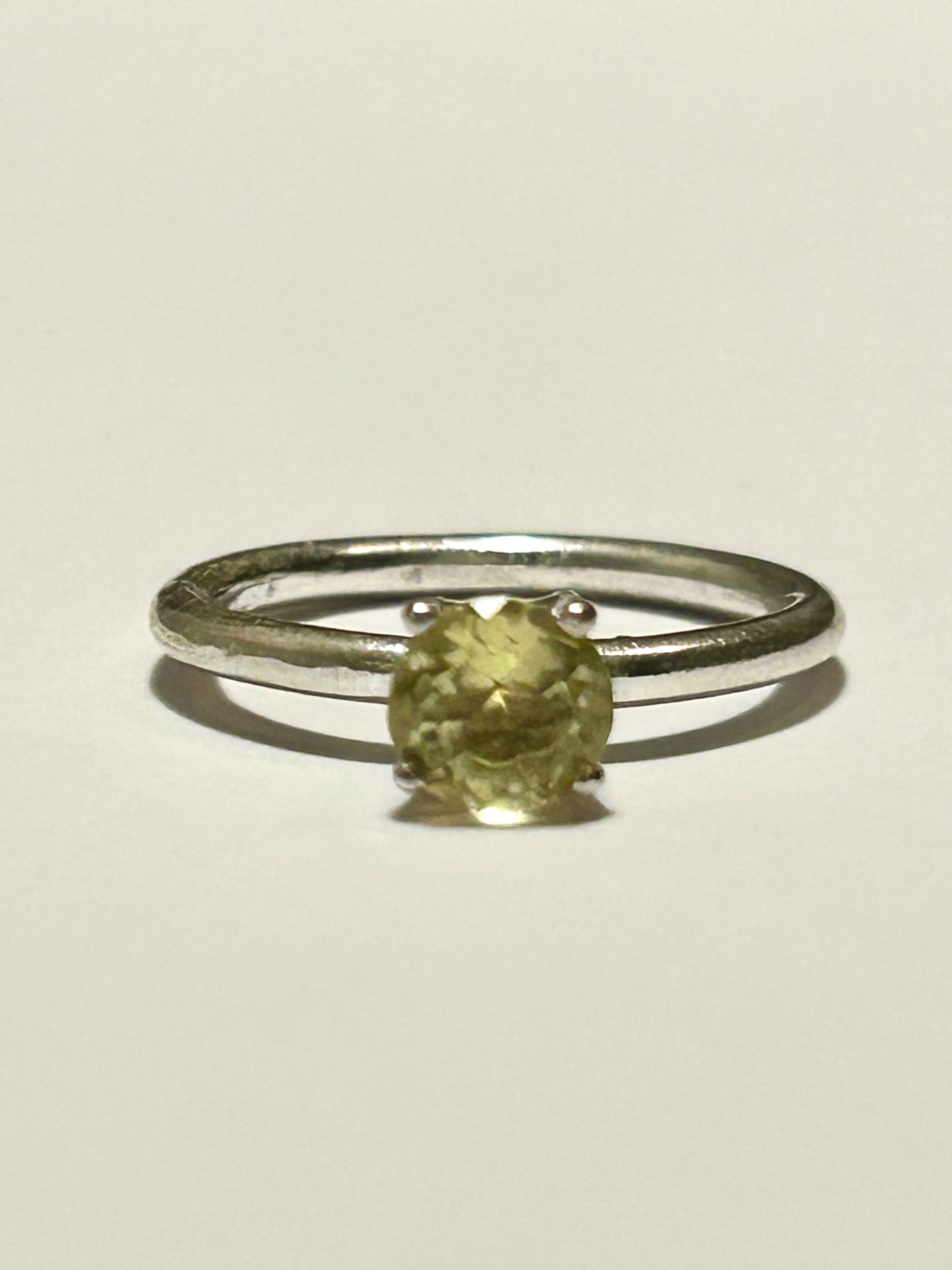 Handcrafted 925 Sterling silver 6mm round lemon citrine facted stone with a 4 pronged crown setting on a plain ring
